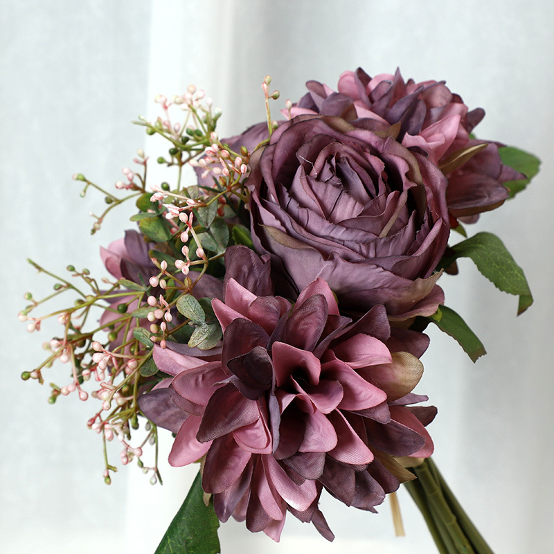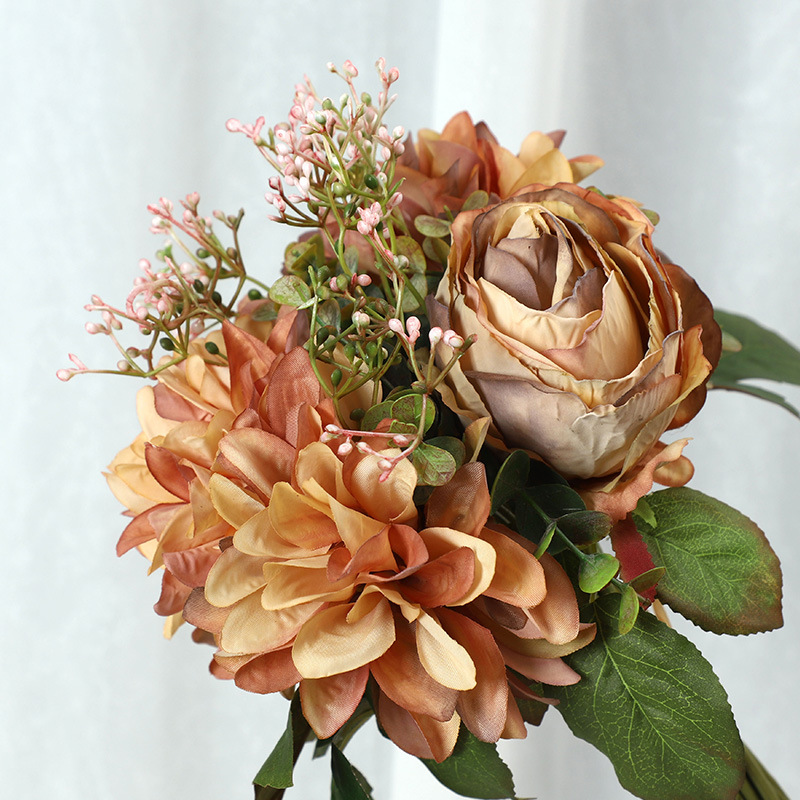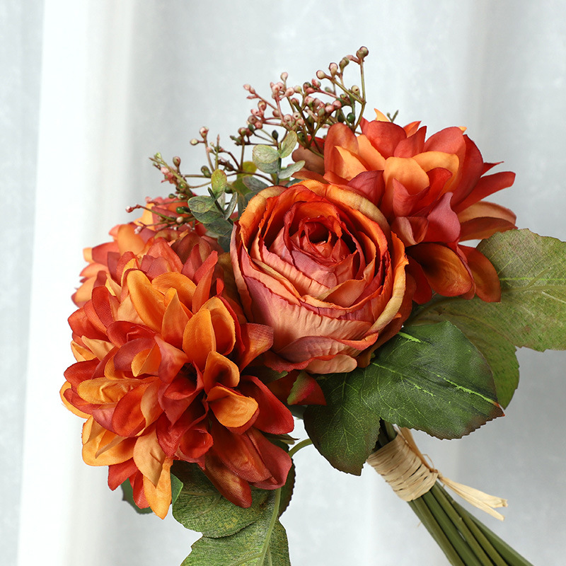 Autumn-Hued Dahlia and Rose Bouquet